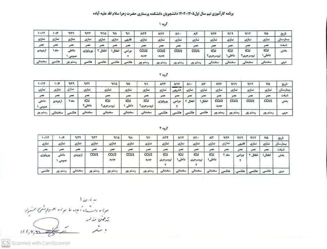 برنامه زمان بندی کارآموزی دانشجویان ورودی 1401 |